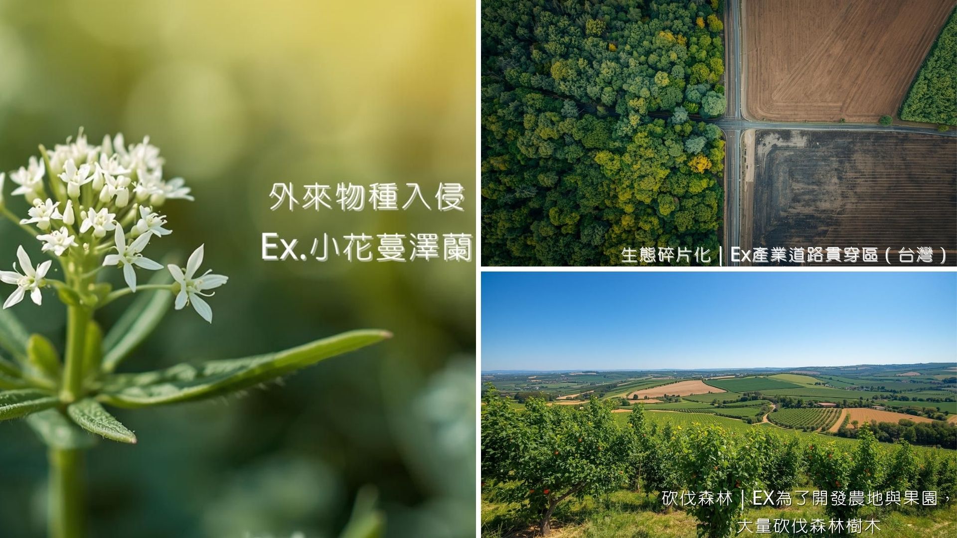 外來物種入侵:透過植物貿易、園藝引入非原生物種,可能排擠當地原生物種生存空間